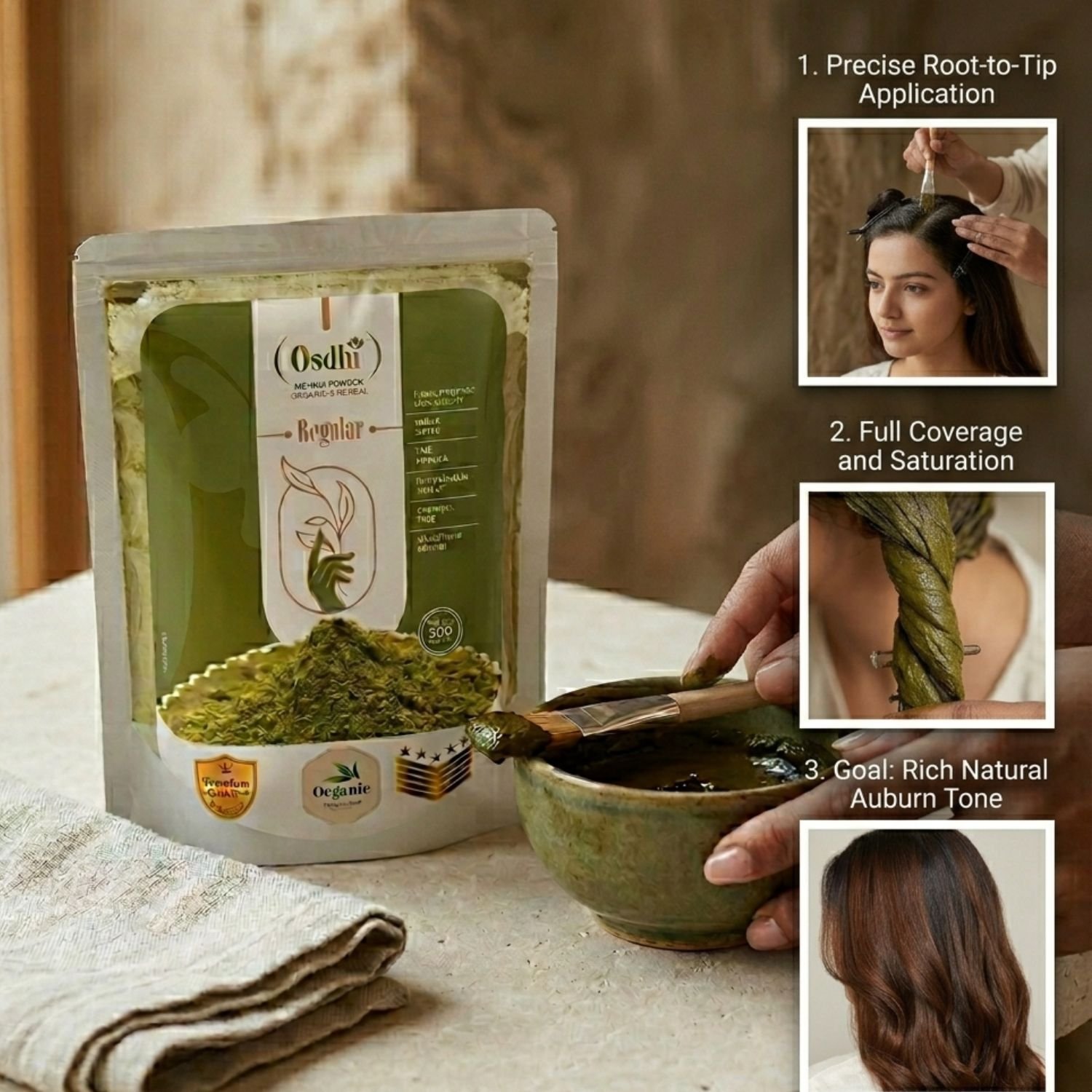 For brands like Osdhi Organic, regular hair mehndi powder can be positioned as a natural and premium quality product for everyday hair care. It is best to clearly mention that the product is meant for hair use only so that customers do not confuse it with bridal or hand mehndi.